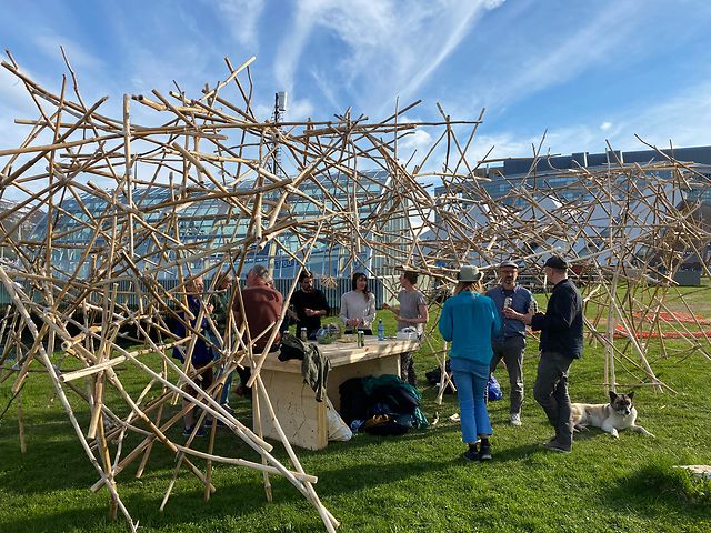 In this project the ropes are in the hands of the audience in a radical format. More like in a game than in a story already written and concluded, the audience is invited into a space and is provided with a heap of dried plant stems. They are invited to start building without a preconceived plan or objective. Everybody gets a roll of biodegradable tape and starts building. No rules only gravity. Will there be beautiful art or collapse, collaboration or conflict? It will surely get complicated.